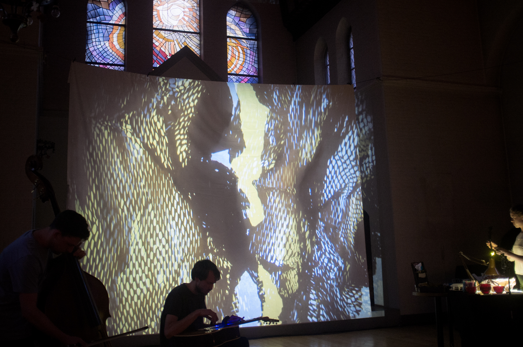 Visuals using live video feedback in collaboration with Paw Høvsgaard